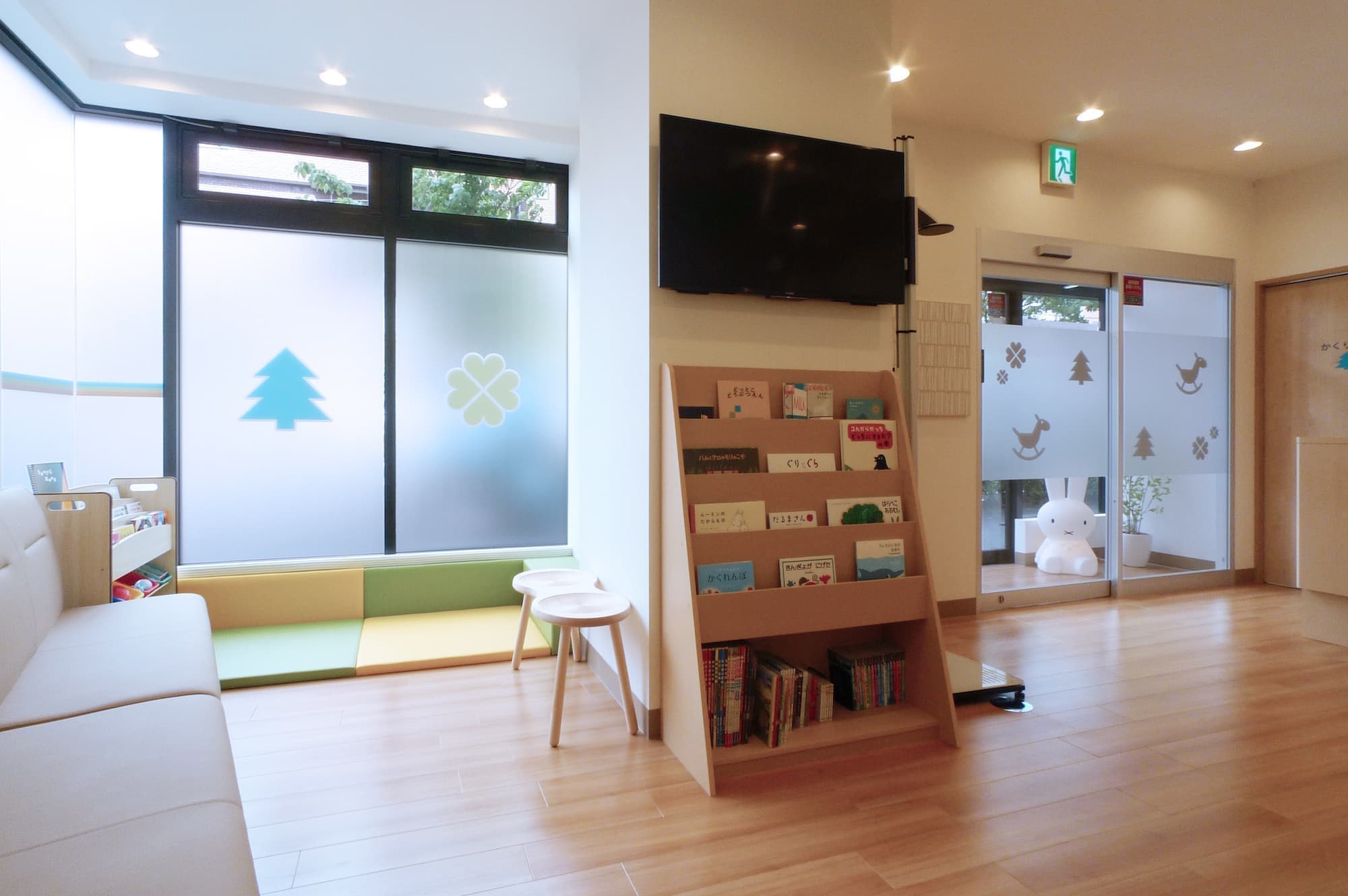 おこさまが退屈しないようにたくさんの絵本と清潔なキッズスペースを準備しております。