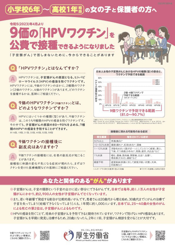 性的な行為でうつし合うことがわかっていますので、9歳以上で、かつ、初めての性行為の前に接種することが効果的と考えられます。