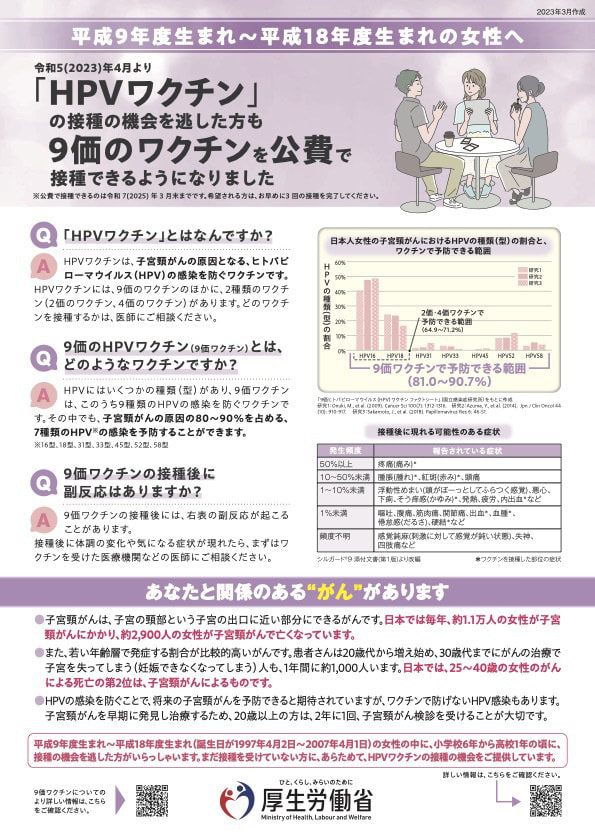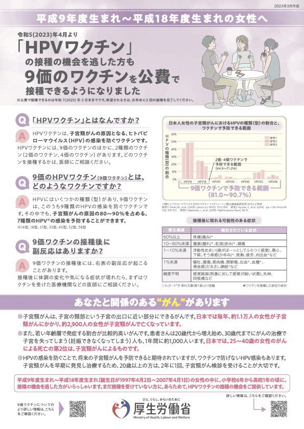 また、最近では男子への適応も拡大されております。2025年8月現在、ガーダシル(4価)とサーバリックス(2価)については、世田谷区の助成対象となっております。HPVは子宮頸がんの原因となるだけでなく、男性もかかる中咽頭がん、肛門がん、陰茎がんなどの原因にもなります。